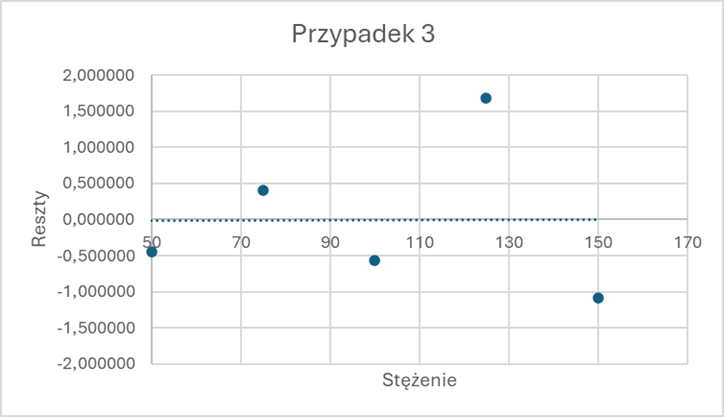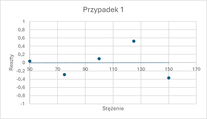Analiza wykresu zależności stężenia od wartości reszt może pomóc w ustaleniu następujących rzeczy: